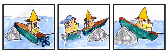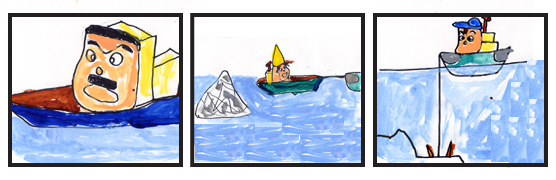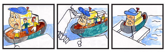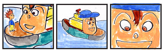 2.曵き船キーヨが言う。「おいおい、元気に俺の甲板で遊んで、あんまり俺をゆすらないでくれ。