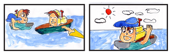 あわててかじをとったら、乗り上げてしまったんだ。」