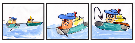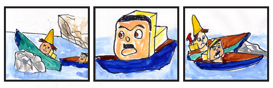 3. しかし、「しまった、問題がおこった。」キーヨが言った。「ぼくのアンカーが岩礁に絡まり動きが取れなくなった。」