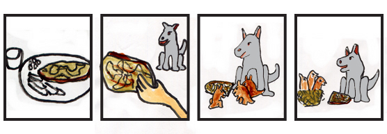 1.「今日はごちそうよ。あなたもステーキよ。けん太。」