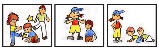 2.「やめろ!」助けるけん太。「本当の友達は貧乏とか金持ちとか関係ないよ。」