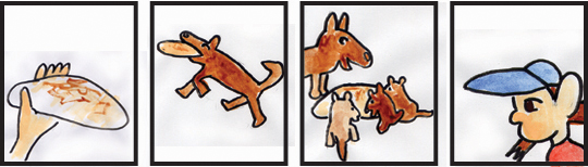 2.「あっ。コラ、泥棒犬!懲らしめてやる。」